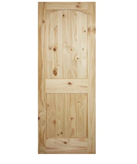 • 24 in. x 80 in. x 1-3/8 in. Left Hand / Right Hand 2-Panel Arch Top V-Groove Knotty Solid Core Unfinished Pine Wood Interior Door Slab