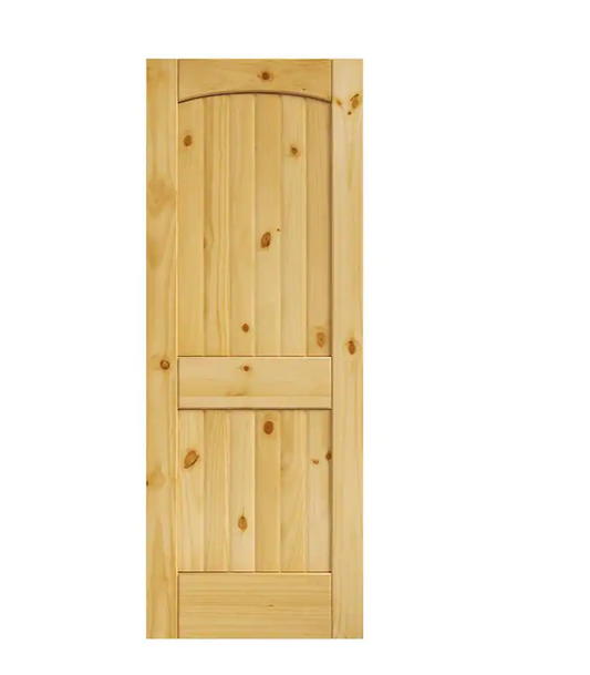 • 30 in. x 80 in. x 1-3/8 in. Left Hand / Right Hand 2-Panel Arch Top V-Groove Knotty Solid Core Unfinished Pine Wood Interior Door Slab