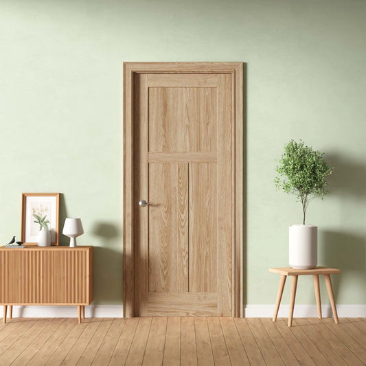 28 in. x 80 in. 3-Panel Craftsman pine Solid Core Unfinished Interior Door Slab