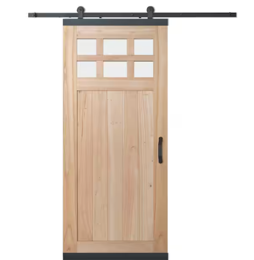 JELD-WEN Farmhouse Unfinished Solid Wood 36 in. x 80 in. W Black Hardware Kit