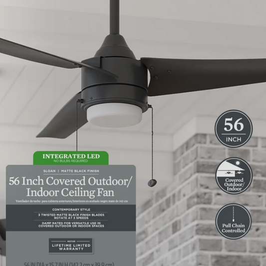 Better Homes & Gardens 56” Matte Black Indoor/Outdoor Ceiling Fan