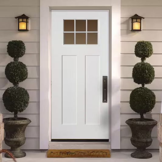 32 in. x 80 in. 6 Lite Clear Craftsman Unfinished Smooth Right-Handed Inswing Fiberglass Prehung Front Door