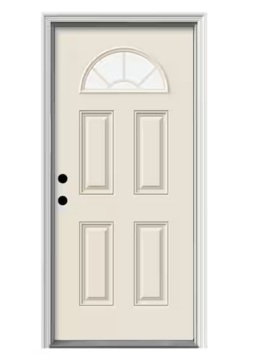 32 in. X 80 in. fan lite primed Left-Handed/inswing fiberglass prehung front door grid or no grid