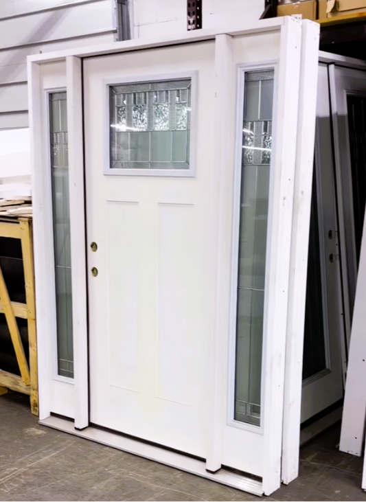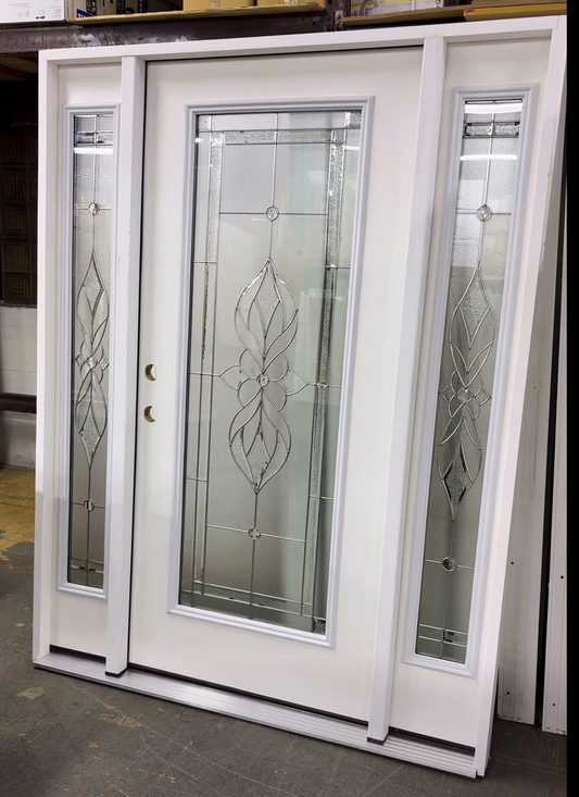 64 in. x 80 in. Sapphire Patina Full Lite Unfinished Smooth Fiberglass Prehung Front Door w/Sidelights