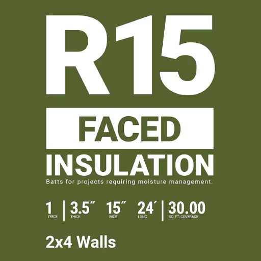 R- 15 Faced Fiberglass Insulation Roll 15 in. x 24 ft. (1 Roll) Coverage Area (sq. ft.) 30 sq ft
