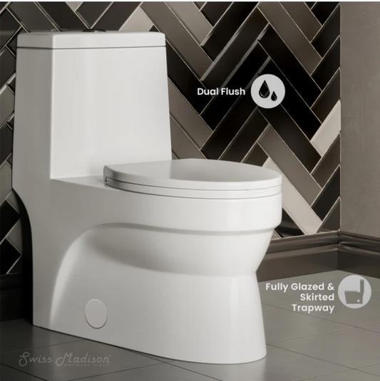 Swiss Madison Soleil 1.6 GPF Dual Flush One Piece Elongated Toilet with Push Button Flush - Seat Included