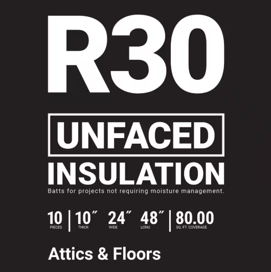 Owens Corning R-30 Unfaced Fiberglass Insulation Batt 80 Sq. ft (24 in. x 48 in.)